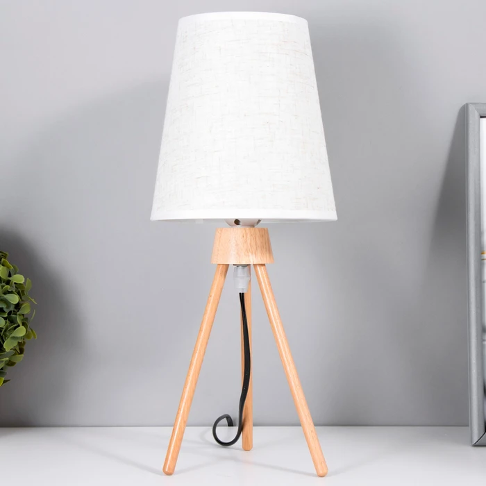Lámpara Moderna de Mesa con Patas de Madera y Pantalla de Lino, Rosca E27