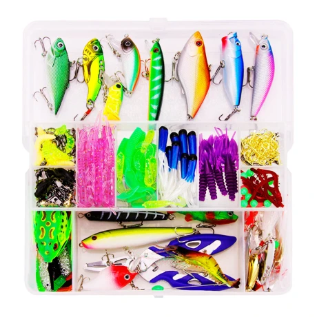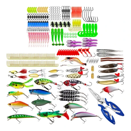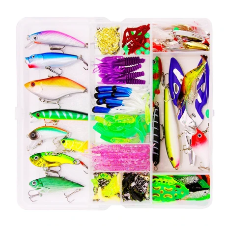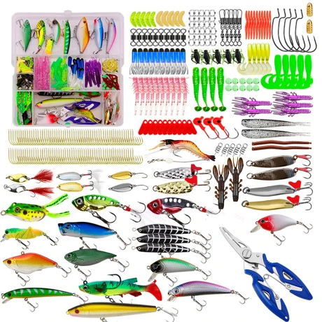 – Kits de juego de cebos de pesca que incluyen 10x señuelos desgastados; 30x anillos, 10x giros, 10x lombrices de tierra, 10x gusanos tubulares, 120×5 # anzuelos de pesca, 5x cola blanda Señuelos, 5x grillos, 4x maggot suave, 2x langosta, myriapod 10x, 2x peces pequeños, 10x cuentas luminosas, 5x broches giratorios, 1x alicates y otros Cebos