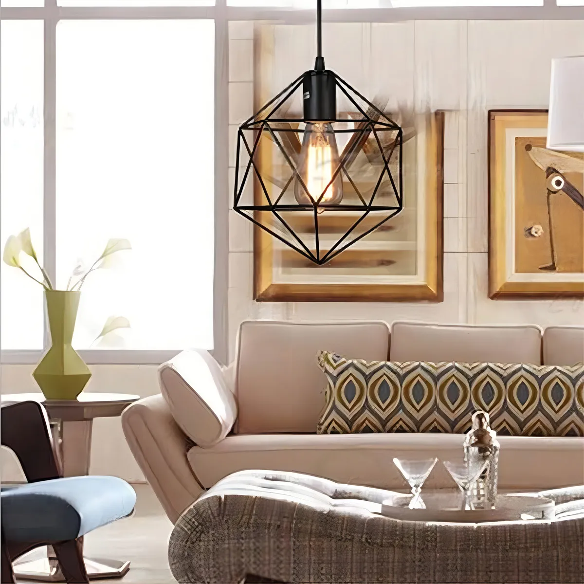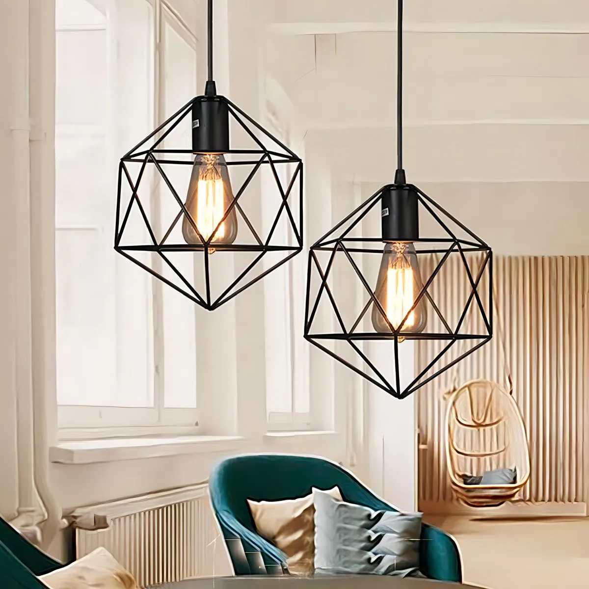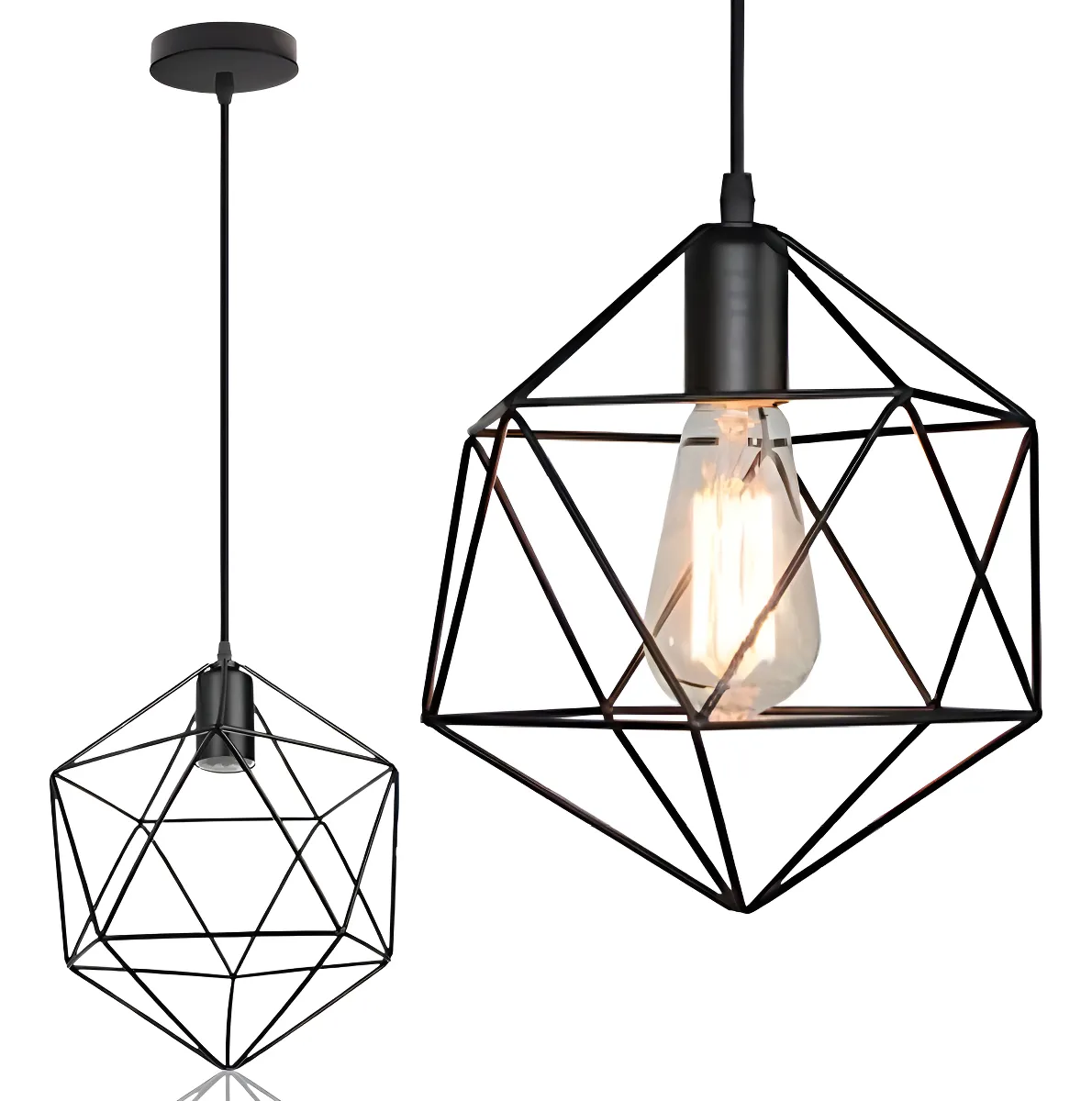 Lámpara Colgante Estilo Diamante Jaula De Metal