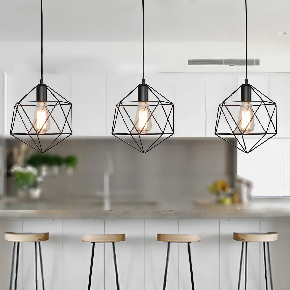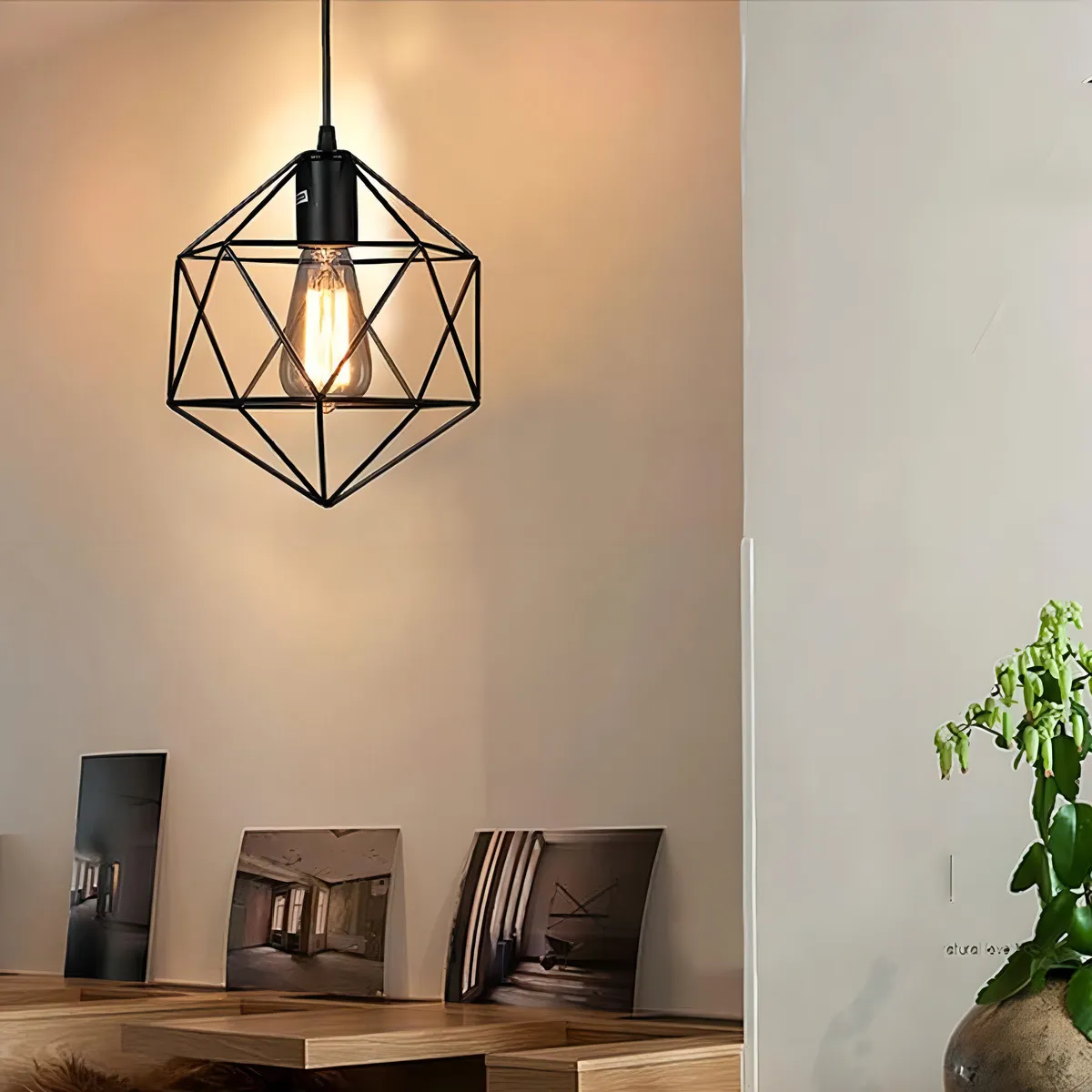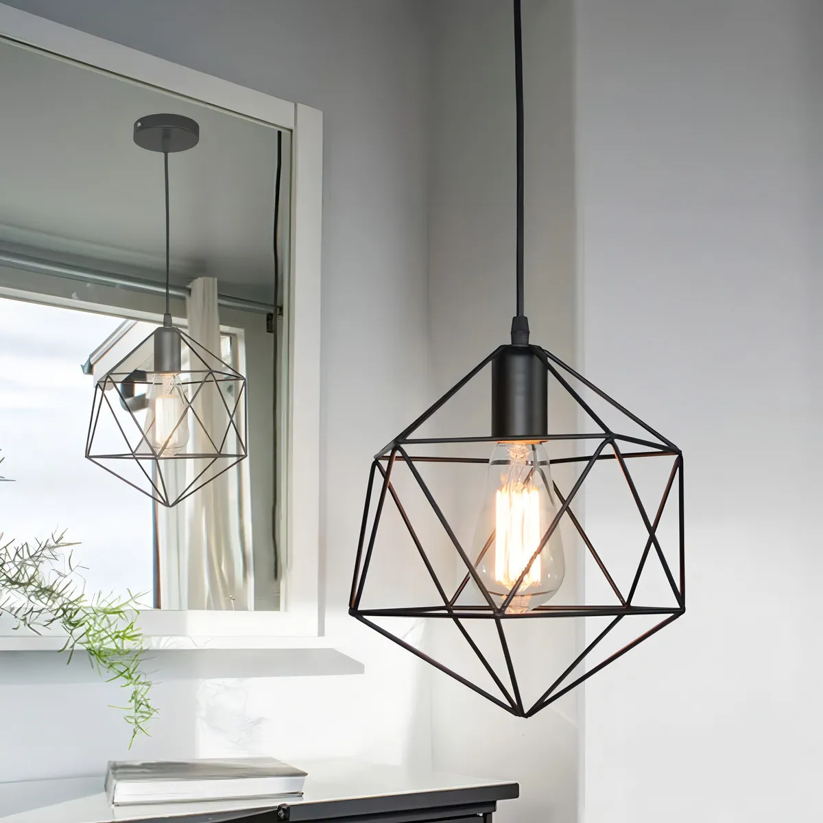 Lámpara Colgante Estilo Diamante Jaula De Metal