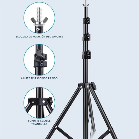 • INCLUYE 2 TRÍPODES DE ALTA CALIDAD, REGULABLES con 3 ALTURAS 69cm, 129cm y 187cm.