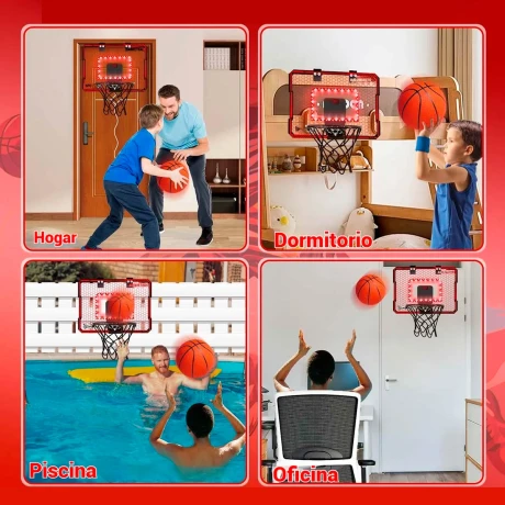 TABLERO BASKET C/CONTADOR LUZ LED PORTÁTIL + PELOTA